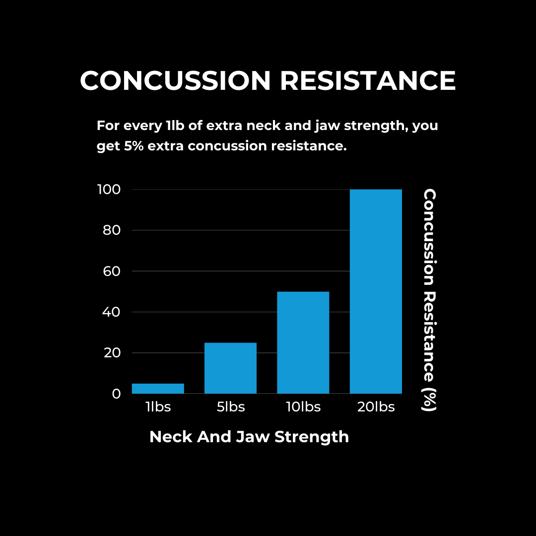 - For every 1lb of neck and jaw strength increase, concussion risk decreases by 5%.